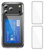 For iPhone 17 Pro Max Clear Phone Case with 2Pcs Screen Film WANLONFENG CK1 Series Card Holder Cover (Big Lens Hole)