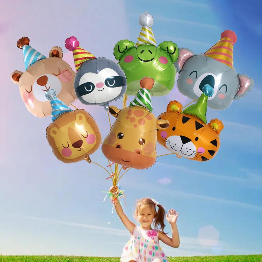 Animal-Themed Aluminum Foil Birthday Balloon Hat: Giraffe, Tiger, Bear, Frog, Sloth