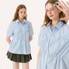Women's NEOTCG Summer Blue Pleated Short Sleeve Shirt - New Design, Trendy, Loose Fit, High-End Casual Style