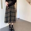 Coffee Plaid A-Line Midi Skirt: Pleated High-Waist Umbrella Design for Women - Perfect for Autumn and Winter.