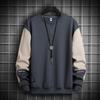 Tide Men's Spliced Round Neck Sweatshirt - Korean Slim Fit, Casual Spring/Autumn Style.