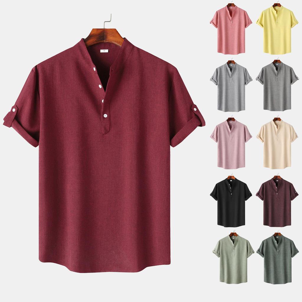 Elevate your wardrobe with this modern slim-fit shirt from the 2024 Spring/Autumn Collection. Crafted from a comfortable cotton blend, it features a sophisticated stand-up collar and a sleek tailor neckline. The solid color design and short sleeves make it a versatile addition to any fashion-forward closet, perfect for both casual and semi-formal occasions.