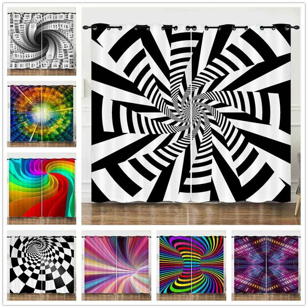 Curtains 3D Three-dimensional Pattern Curtains Nordic Wind Irregular Special-shaped Blackout Curtains Bedroom Free of Punching