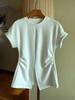 Embrace a stylish blend of comfort and flair with this trendy short sleeve top. Crafted from soft, high-quality cotton, this shirt features a flattering waist-hugging fit and a unique batwing sleeve design that adds a touch of elegance to your look. The round neckline ensures a classic appeal, while the side slit offers a contemporary twist, making it perfect for any casual outing or relaxed occasion.