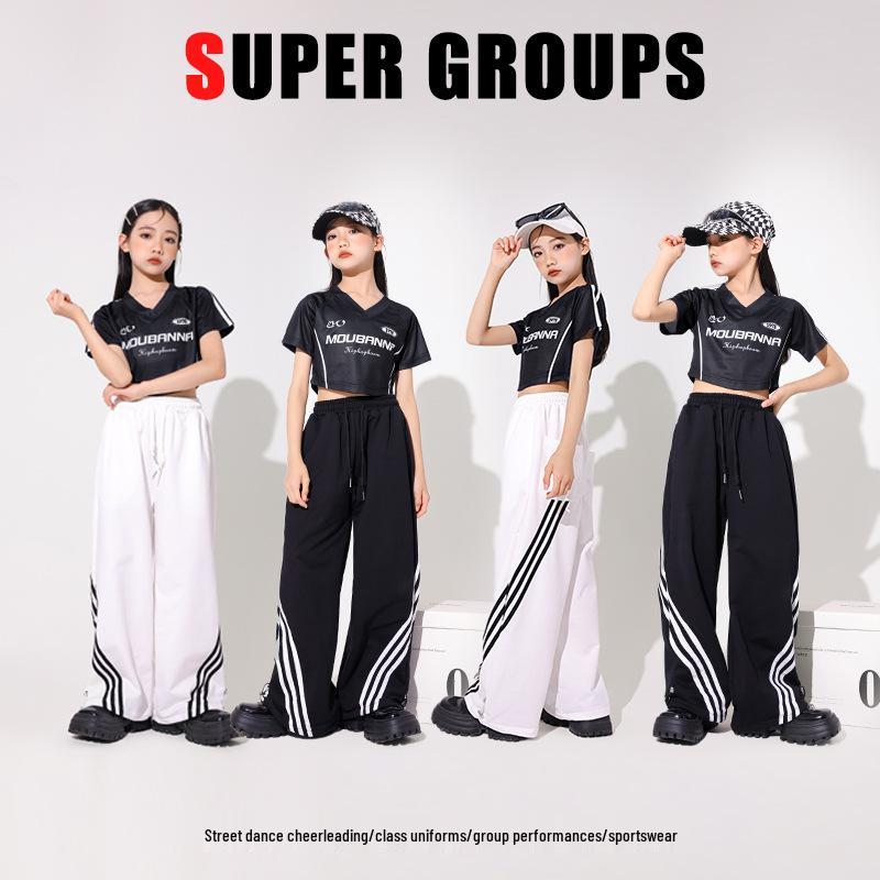 Get your child ready to shine on stage or in practice sessions with this street dance hip-hop jazz performance costume and practice outfit. Crafted from soft and breathable cotton, this outfit ensures comfort and flexibility, allowing for unrestricted movement during energetic dance routines. Its stylish design combines functionality with a trendy look, making it perfect for young dancers eager to express themselves. Ideal for both rehearsals and performances, this outfit will have your child feeling confident and looking the part.