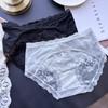 Ladies Spring Summer Sexy After Hollowed-out Ice Silk Gauze Lace Mid-waist Panties