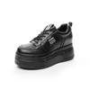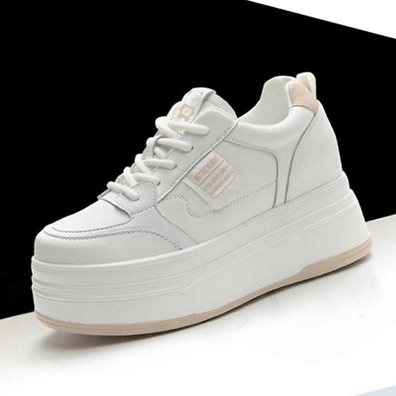 Genuine Leather Shoes Women Fashion Sneakers Flat Platform Brand Ladies Casual Shoes Height Increasing 7cm Black White
