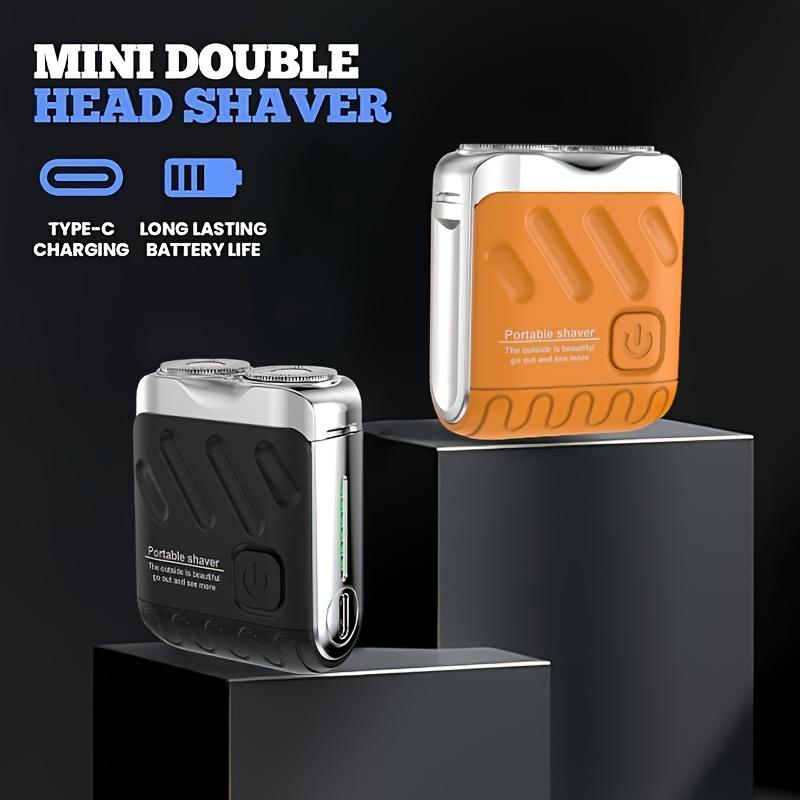 Men'S Electric Shaver with Dual Blades - Fast-Charging USB-C, Long-Lasting Lithium Battery, Compact & Portable Design - Orange/ Metallic Accents