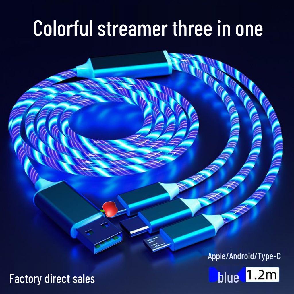 Three-in-One Luminous Fast Charging Cable: Colorful, Glowing, Car-Compatible