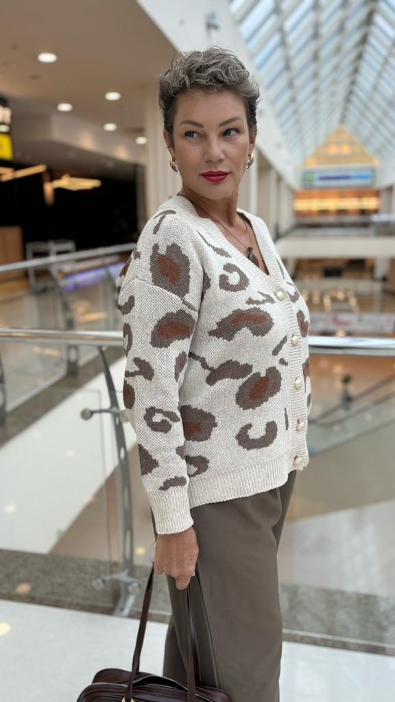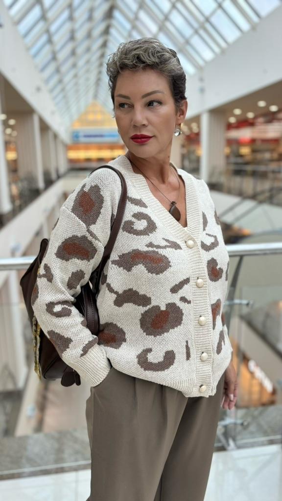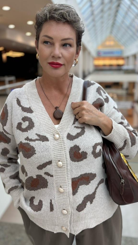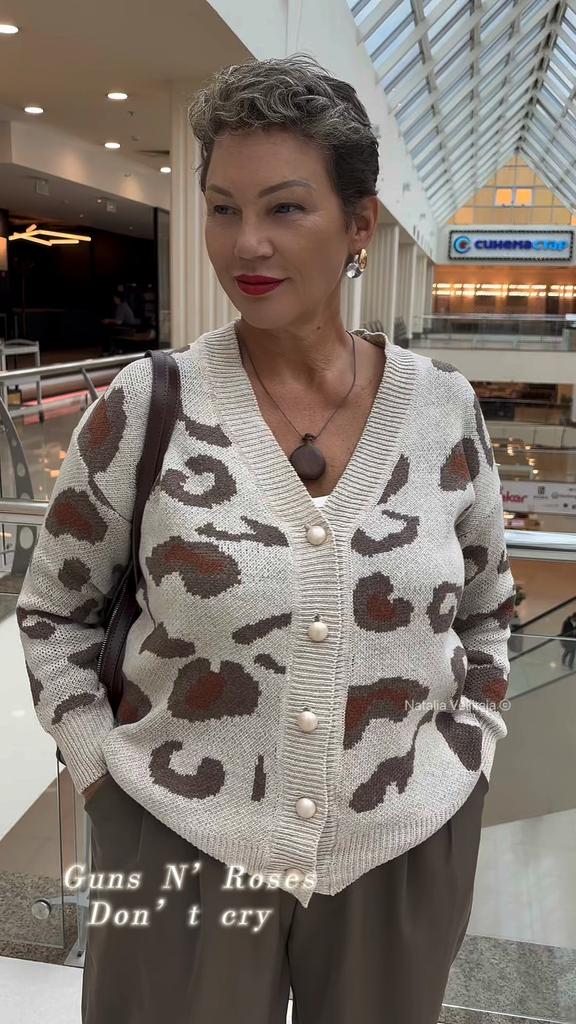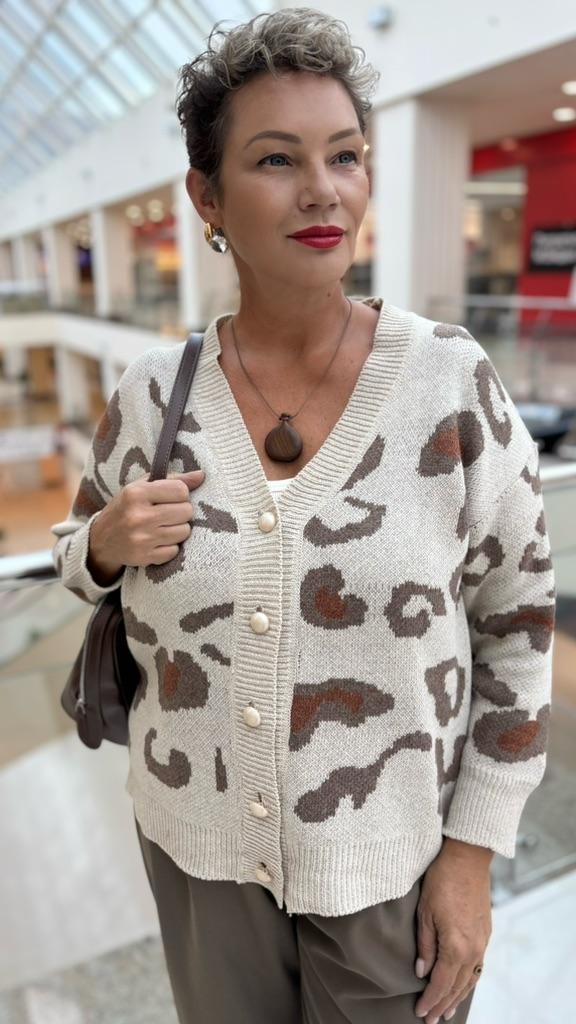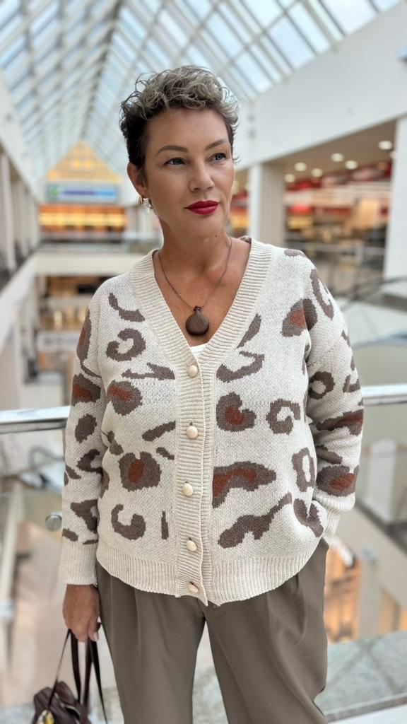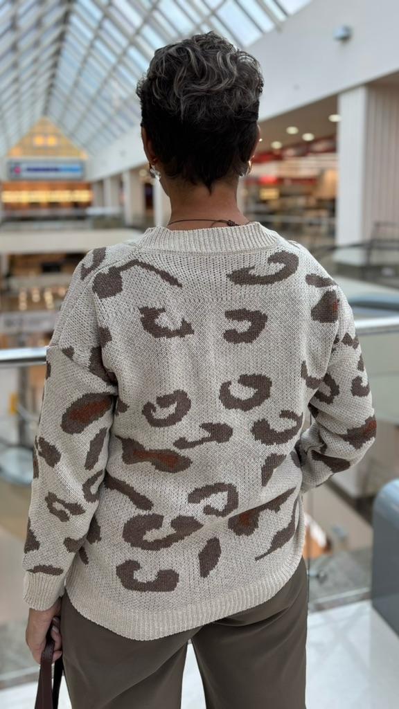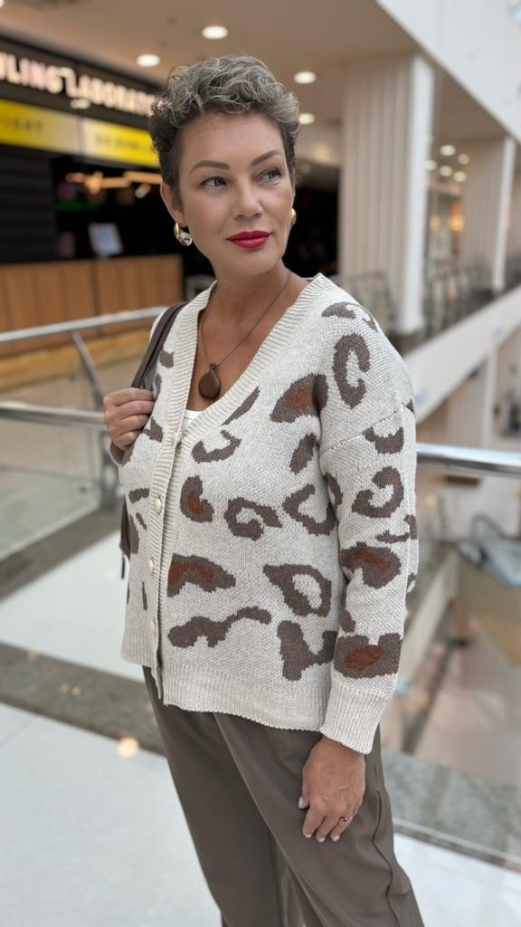 Fashion V-neck Cardigan Leopard Print Sweater for Women Autumn Winter Korean Version Loose Casual Knitted Jacket Elegant Ladies Simple Office Clothing