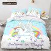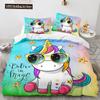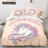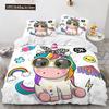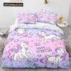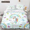 Cartoon Unicorn Duvet Cover King Queen Lovely White Mythical Animal Bedding Set Kids Girl Colorful Rainbow Polyester Quilt Cover