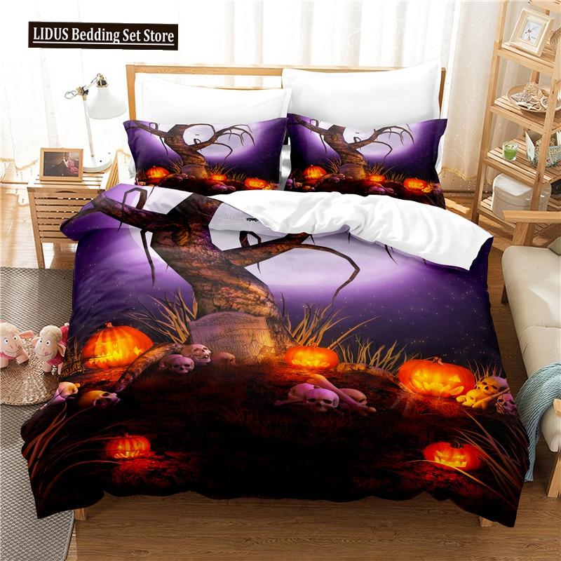Halloween Duvet Cover Set Pumpkin Lantern Pattern Comforter Cover King Queen Size For Kids Boys Girls Gift Polyester Bedding Set