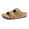 Men Slip On Cork Sandals Clogs Slide Slippers With Double Buckles Suede Leather Comfort Footbed Classics Health Soles Summer