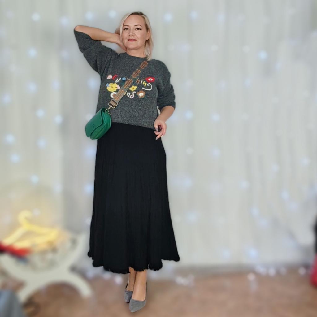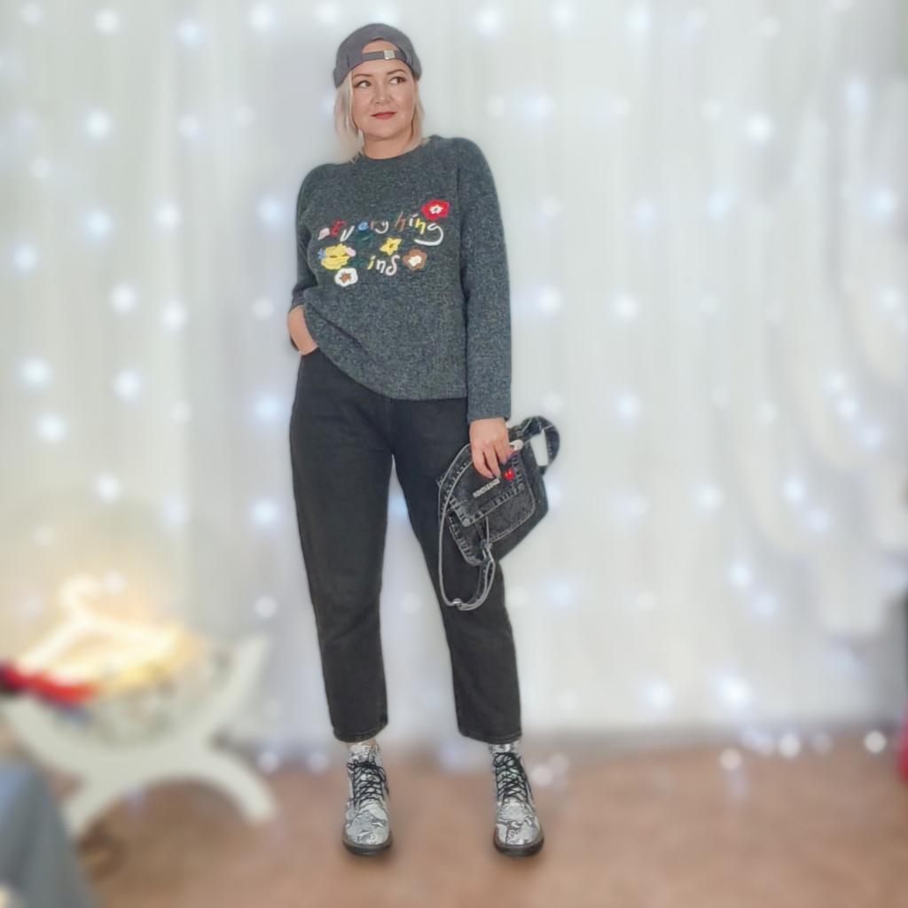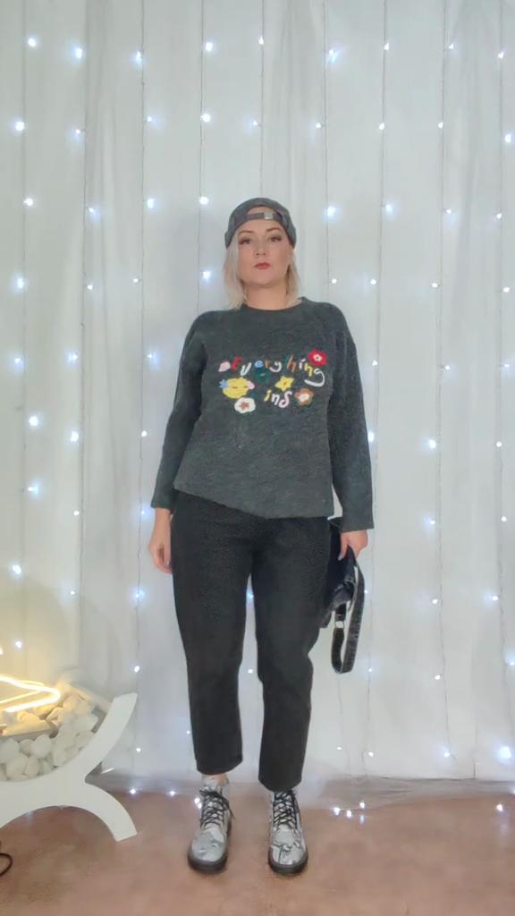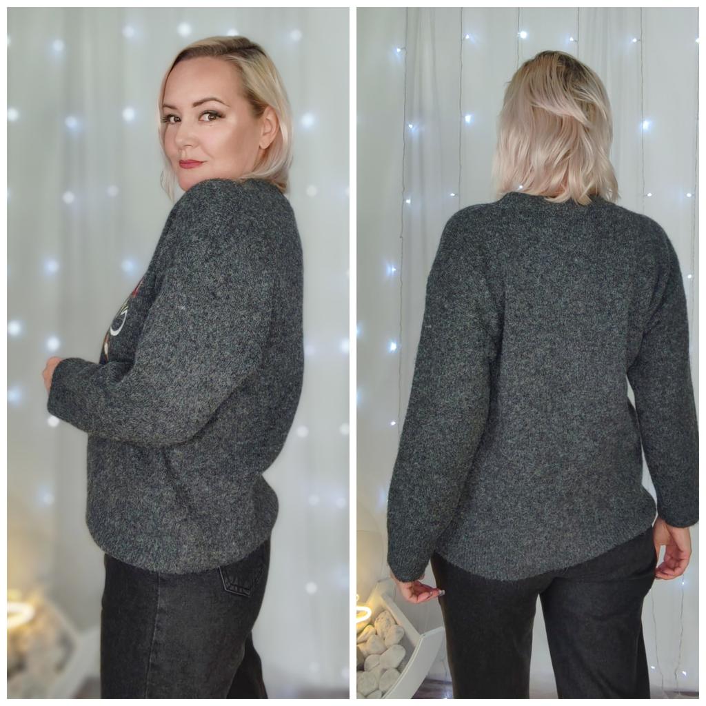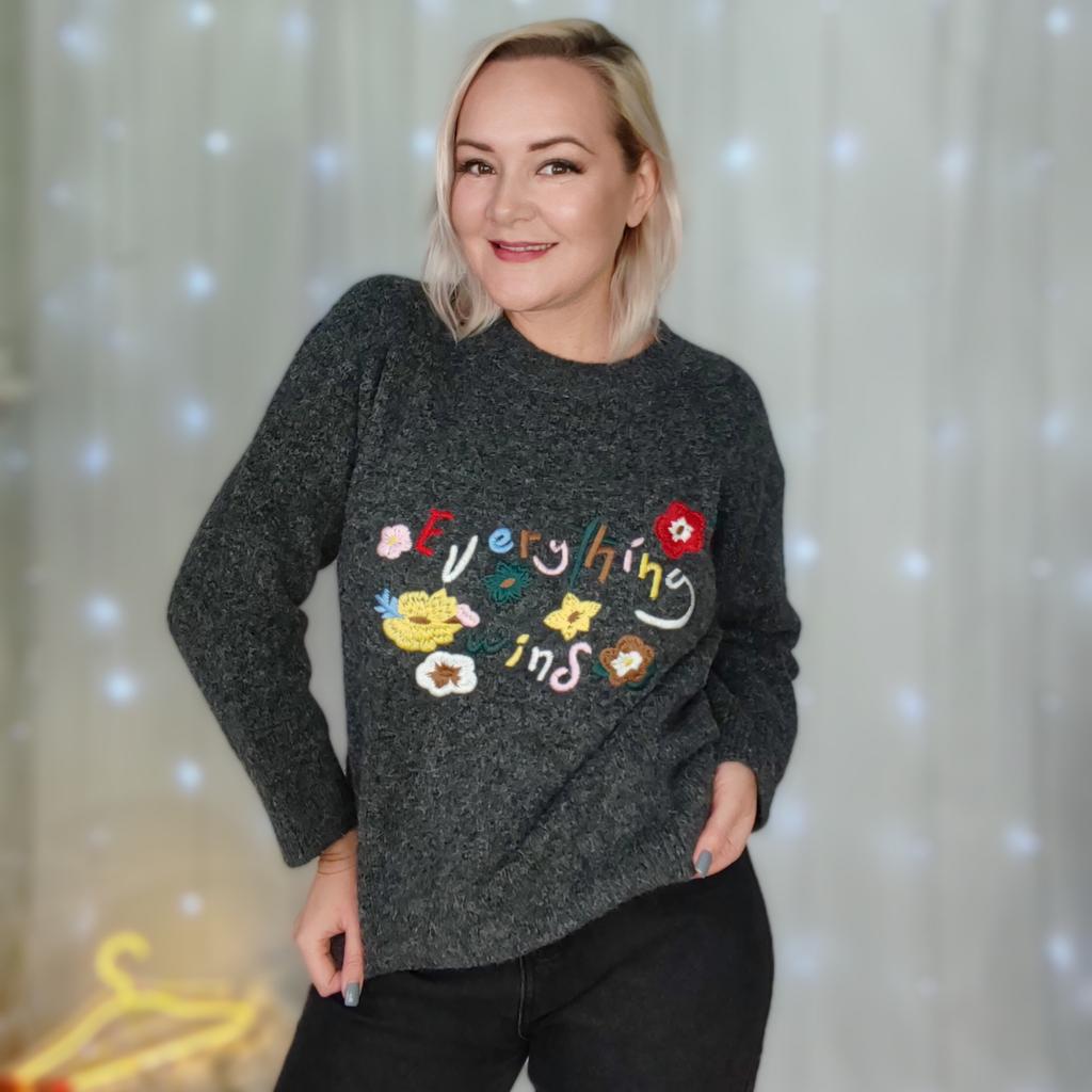 Dimanaf 2025 Women Sweaters Knitting Basic Embroidered Flowers Grey O-Neck Style Loose Pullover Sweater