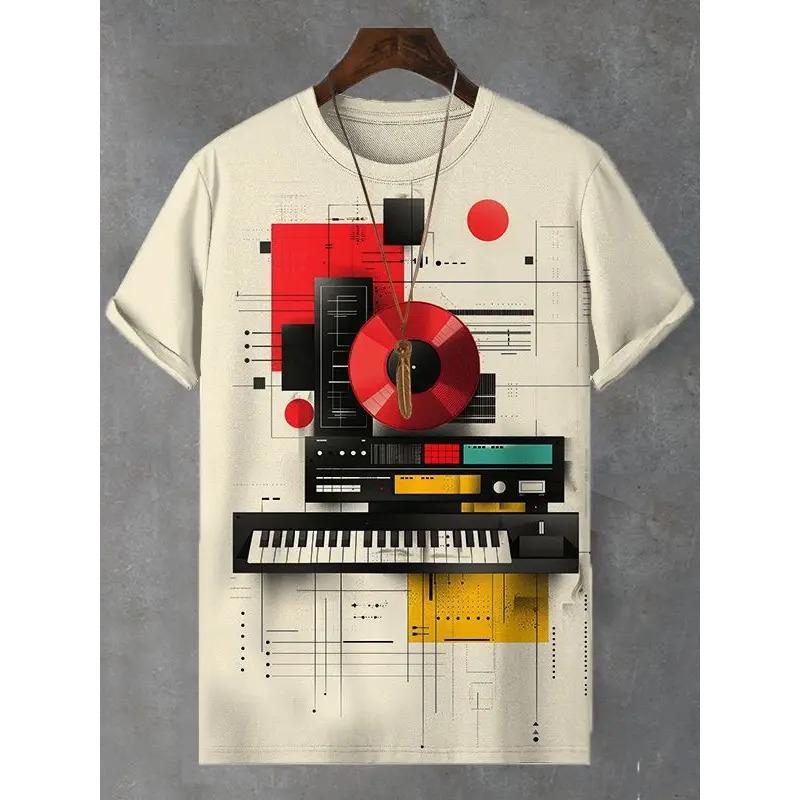 Fashion Oversized Men T-shirt Music 3d T Shirt Black White Streetwear Casual Short Sleeve Summer Men's Clothing Party Tees Tops