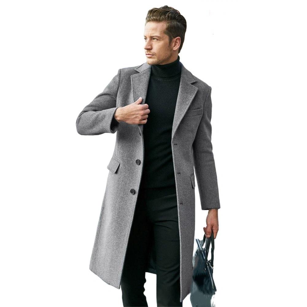 Men's British Men's Long-sleeved Woolen Coat Autumn and Winter Woolen Coat