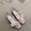 JX Super Fairy Temperament Sweet Thick Heel Small Leather Shoes Summer New Round Head Cute Bow Lo Shoes Mary Jane