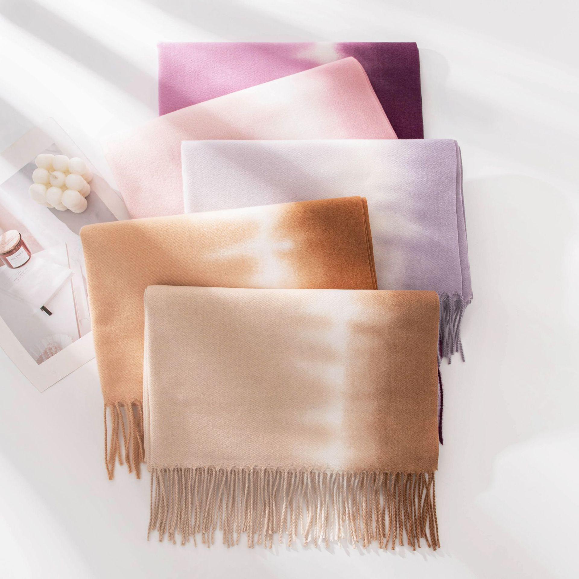Girl's Shawl, Warm Scarf, Scarf, Couple's Scarf, Tassel, Gradient Color, Thick, Cold Proof, Warm Shawl