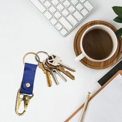 RSINC Full Grain Handmade Leather Keychain | Metal Fittings | Brass Finish Blue B0DSW7LMG3