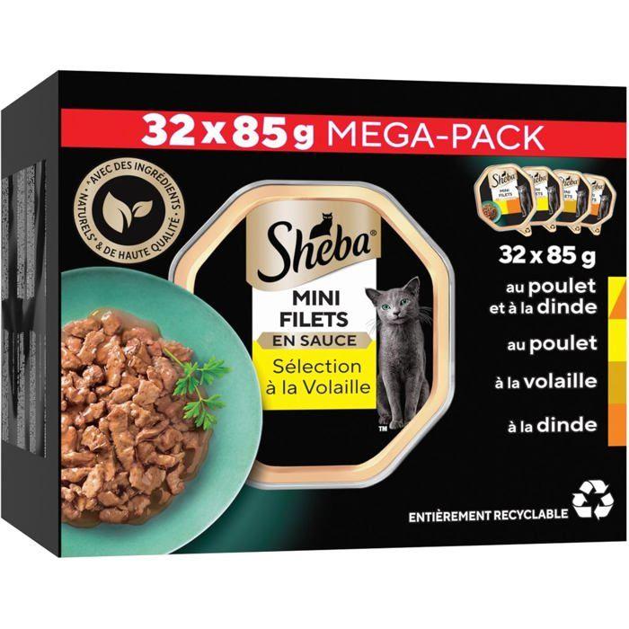 Sheba Mini Filets En Sauce Sélection À La Volaille Barquettes Pour Chat Adulte 4 Variétés Mega Pack 32x85g