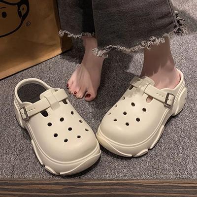 Simple Thick-soled Heightening Hole Shoes for Women's Summer Outer Wear Non-slip Sandals for Girls' Beach Sandals for Home Use