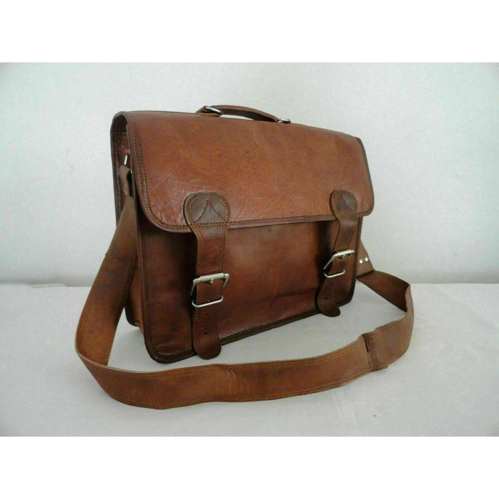 Real Satchel Bag Genuine Laptop Brown Briefcase Casual Goat Leather Messenger