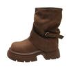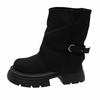 Fashion Women Boots Middle Follow Thick Sole Anti-slip Waterproof Platform Retro Upgraded Round Head Fang Hei Shoes Botas Mujer