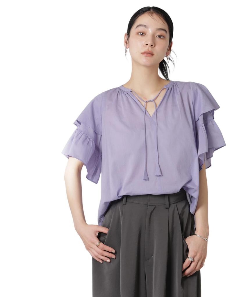 Nano Universe Made In India Cotton Frill Sleeve F Blouse, Women's, 081, L. Purple, 669-5121300