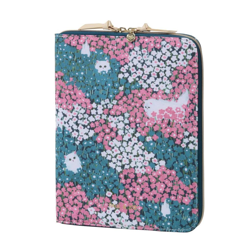 This is an inner carrying case from French fashion brand PAUL & JOE. From the Fall/Winter 2024 collection, a cute new design features the brand's iconic white cat, Gypsy, strolling through a flower field playing hide-and-seek. This sleek carrying case can neatly store and carry an 11-inch tablet or A5-sized notebook. Its wide opening features a double zipper, and the interior is packed with convenient pockets for storing stationery and other small items. It's also a convenient item that can be used as a bag-in-bag for office use or remote work.