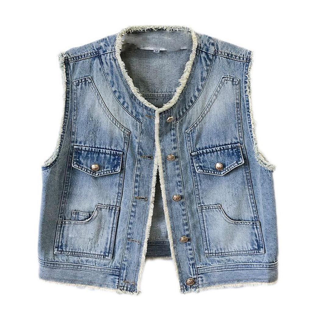 Women's Comfortable Fashion Denim Casual Cardigan Button Vest Jacket