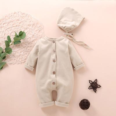 Newborn Infant Baby Boys Girls Solid Single Breasted Romper Jumpsuit+Hat Outfits