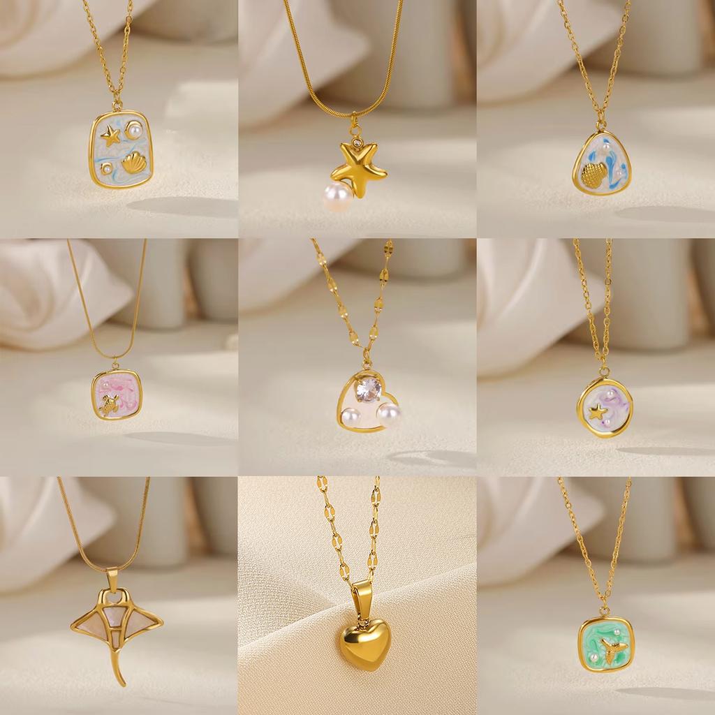 Stainless Steel Heart Star Necklace for Women Gold Color Anti Fading Choker Marine Life Zircon Summer Vacation Accessories Gift