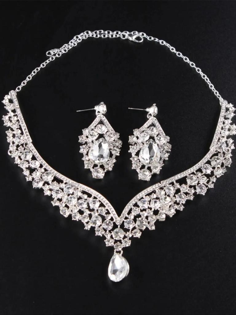 3PC Wedding Season Women's Fashion Full Zircon Water Drop Necklace Earrings Zircon Set Wedding Banquet Party Holiday Gift