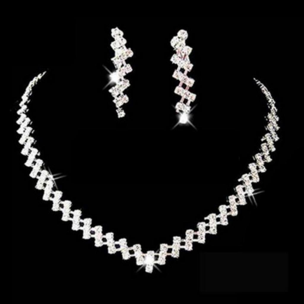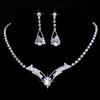 Luxury Rhinestone Geometric Bridal Necklace Earrings Set For Women Dainty Elegant Waterdrop Crystal Wedding Banquet Zircon Set