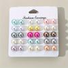 15 Pairs Elegant Colored Imitation Zircon Stud Earrings Korean Charm Ball Bead Earrings Women's High-end Banquet Zircon Gifts