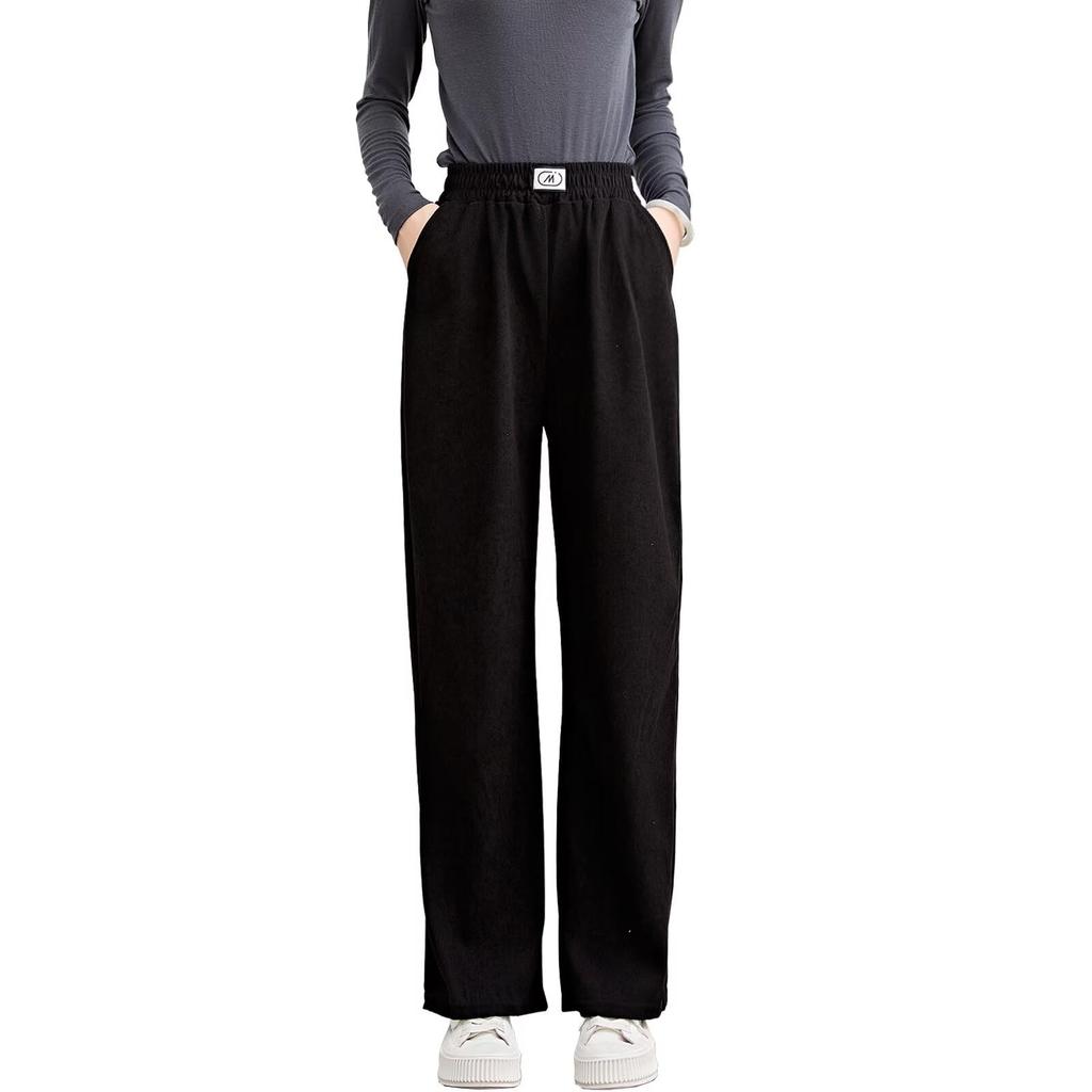 Running Sheep Wide Leg Long Loose Straight Easy Women's Pants, Trousers, Slacks, Fit, Casual, Leg, Fit, rsM118blk-L