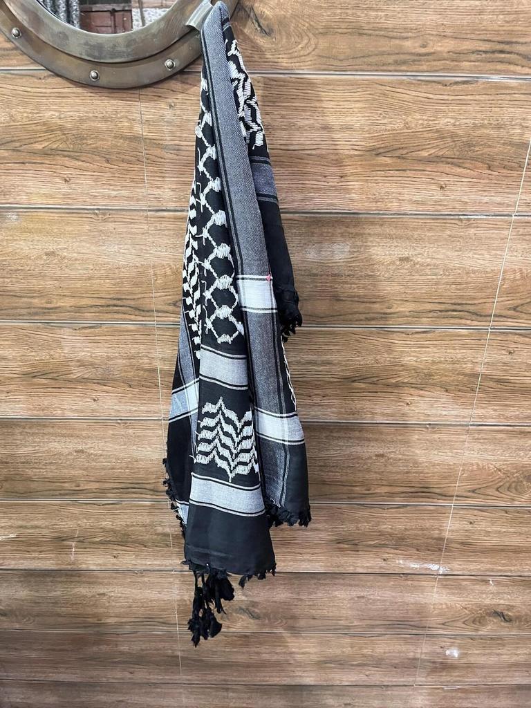 The Keffiyeh Palestinian Scarf is a classic square scarf that is constructed entirely of cotton. This 47" x 47" Arafat scarf is appropriate for both men and women due to its blended fabric. Handmade in India, this multipurpose scarf has excellent craftsmanship and can be dressed in a variety of ways. The Keffiyeh scarf is a multipurpose accessory that honors army and military and is appropriate for any season.