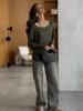 Simple Long Sleeved Cotton Knit Sweater Spring Summer Women Solid Color Elastic Loose Casual Tops