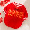 Dog Clothes Wool Grain Embroidered New Year's Fleece Jacket Small Dog Teddy Bear Festive New Year's Greeting Two-legged Pet Clothing