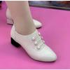 Women's Shoes Korean Version Pointed Head Medium Thick Heel Low Top Fashion Button Side Zipper