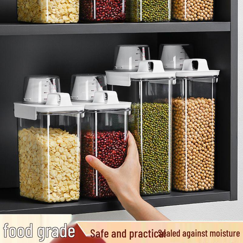 Airtight Kitchen Storage Container: Food-Grade Transparent Plastic Canister for Grains, Rice, and Beans.