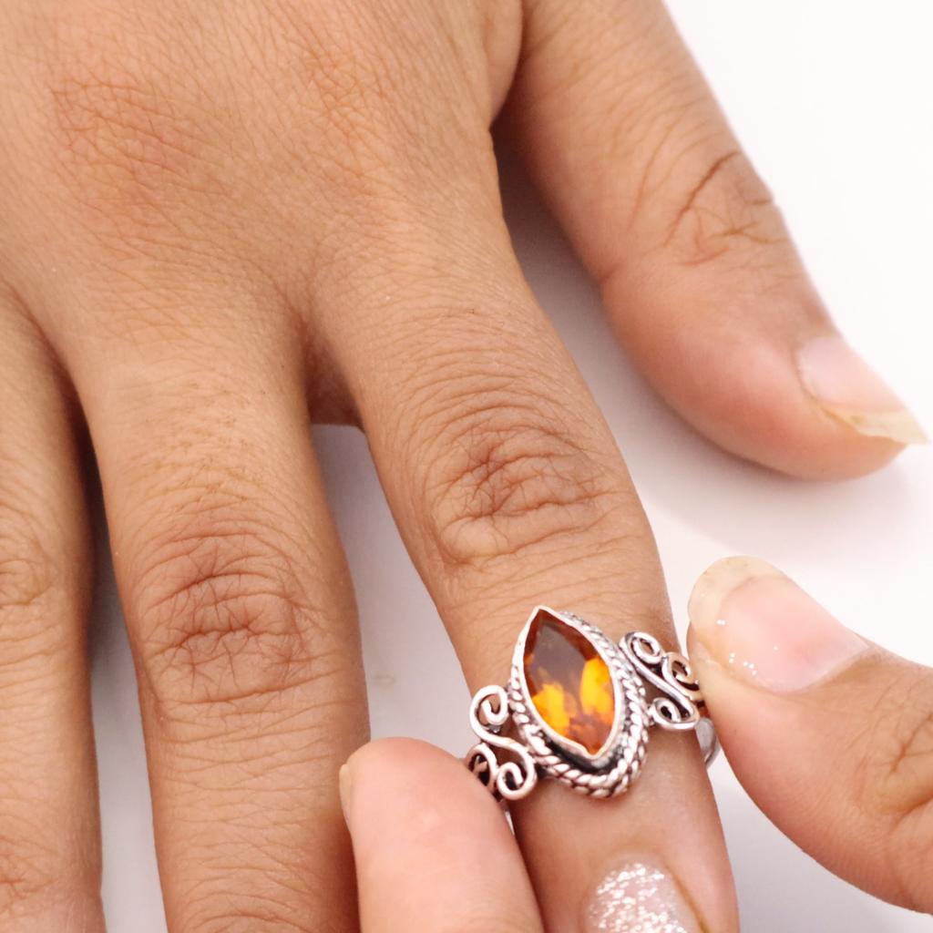 Dainty Citrine Gemstone 925 Sterling Silver Jewelry Handmade Ring For Women Gift PR-1-4