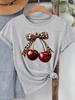 New Summer Women T Shirt Fashion Cherry Bow Print Short Sleeve T-Shirts Casual Streetwear Hip Hop Y2k Clothes Tops