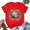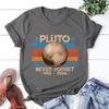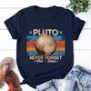 Vintage Never Forget Pluto Nerdy Astronomy Space Science T-Shirt Fashion Creative Design Round Neck Short Sleeve Tees