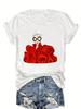 Women'S Floral Graphic T-Shirt Casual Crew Neck Short Sleeve Top Polyester Knit Fabric Regular Length Elastane