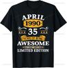Vintage 35th Birthday Decorations Men Funny 1990 35 Birthday Custom Printed Graphic T Shirts Short Sleeve Camiseta Hombre