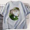 Watermelon Cat Silly Cat Funny Meme T Shirts Men's Women Clothing Casual Cotton T-shirt Fashion Short Sleeve Oversized T-shirts