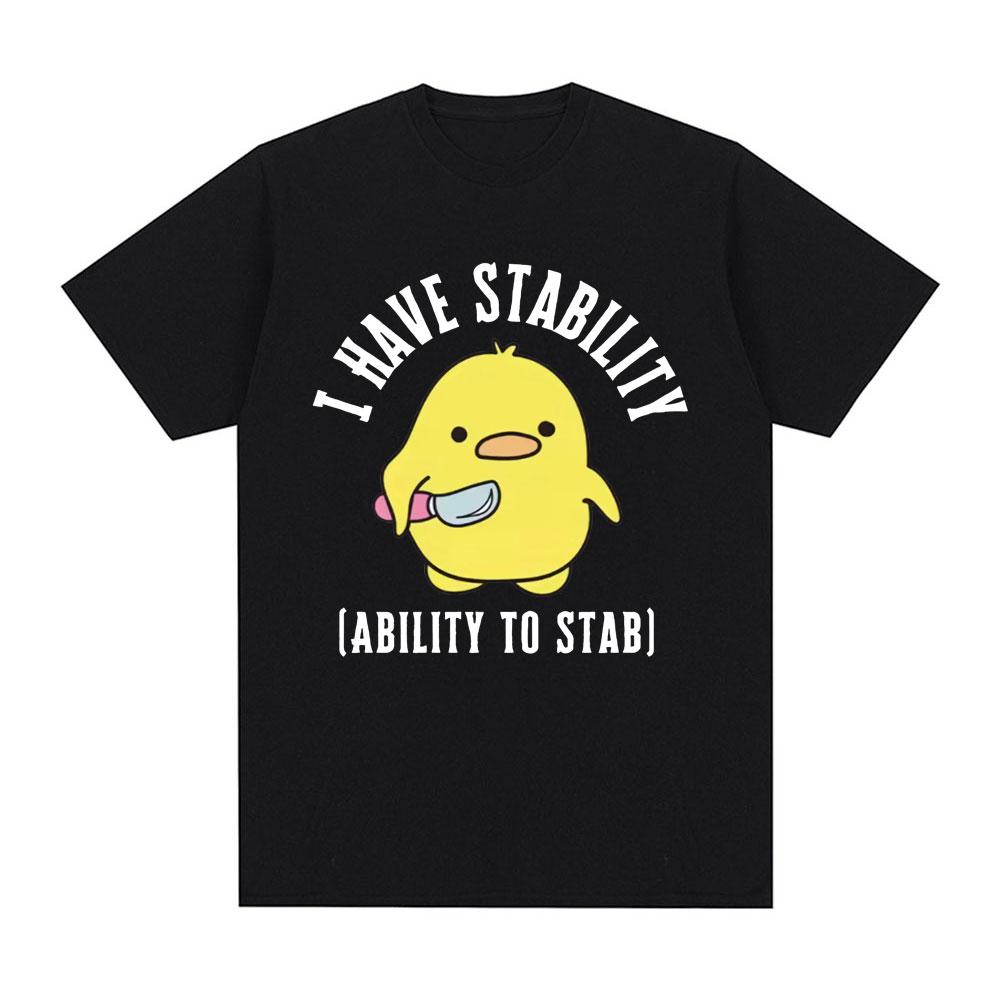 I Have Stability Ability To Stab T-Shirt Men Women Fashion Duck Meme Graphic T-shirts Cotton Casual Tee Shirt Unisex Streetwear