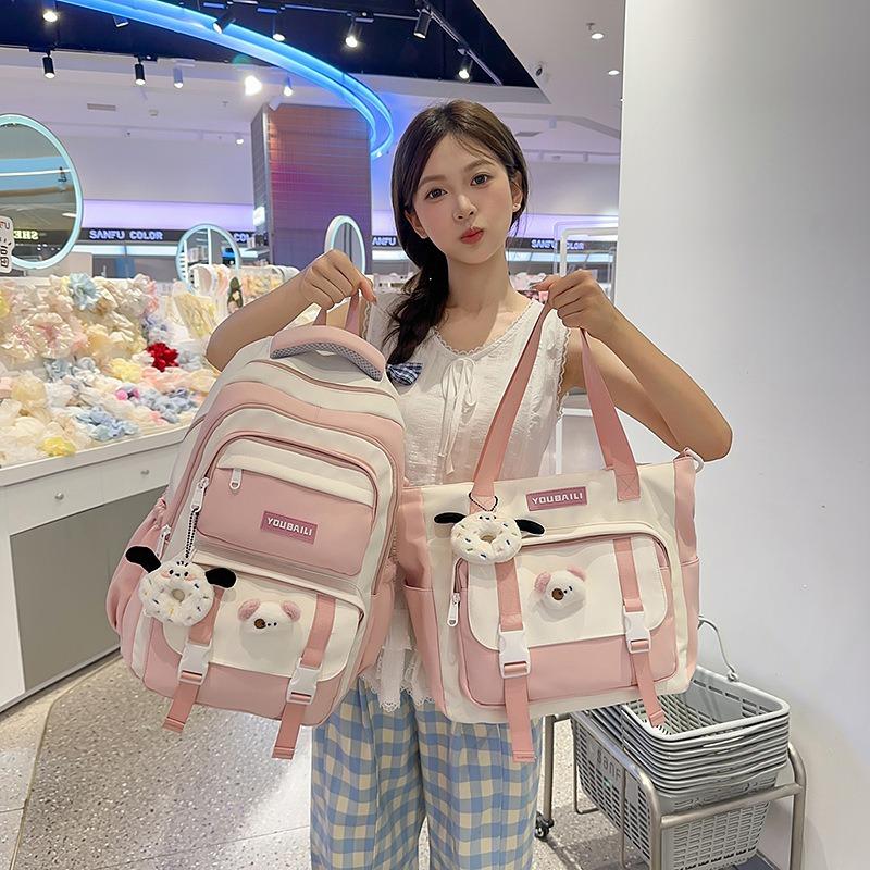 New High-value College Style, Fresh and Sweet Backpack, Contrasting Color Splicing Make-up Bag, Junior High School Student Backpack