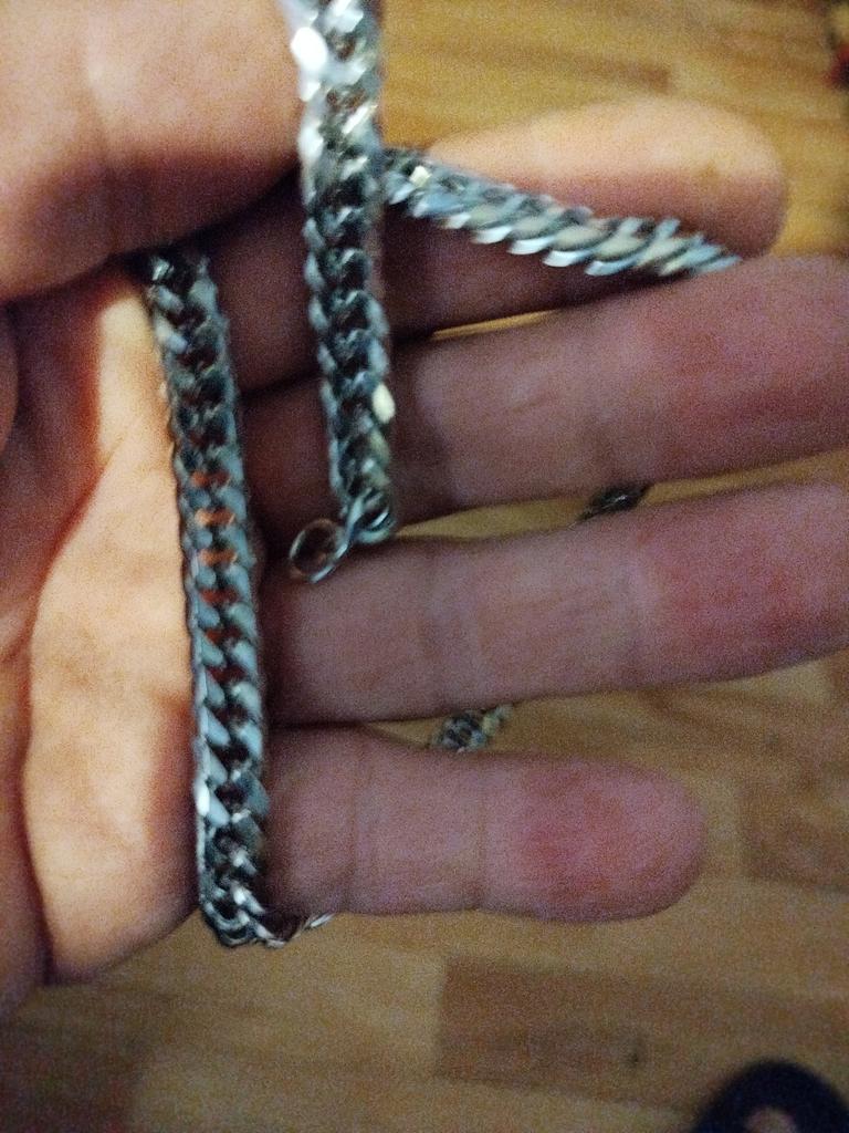 The chain is also great, yes, on my hand I fastened everything perfectly, everything is normal, everything is great, wide, I like it very much, I am very satisfied, if you have more chains, I will order more of this type for my neck. Maybe bigger ones. The size there is not 17, there, for example, 22 like this.